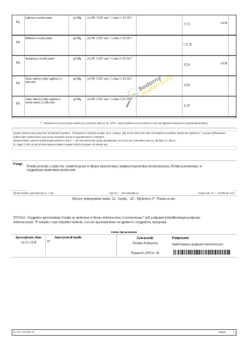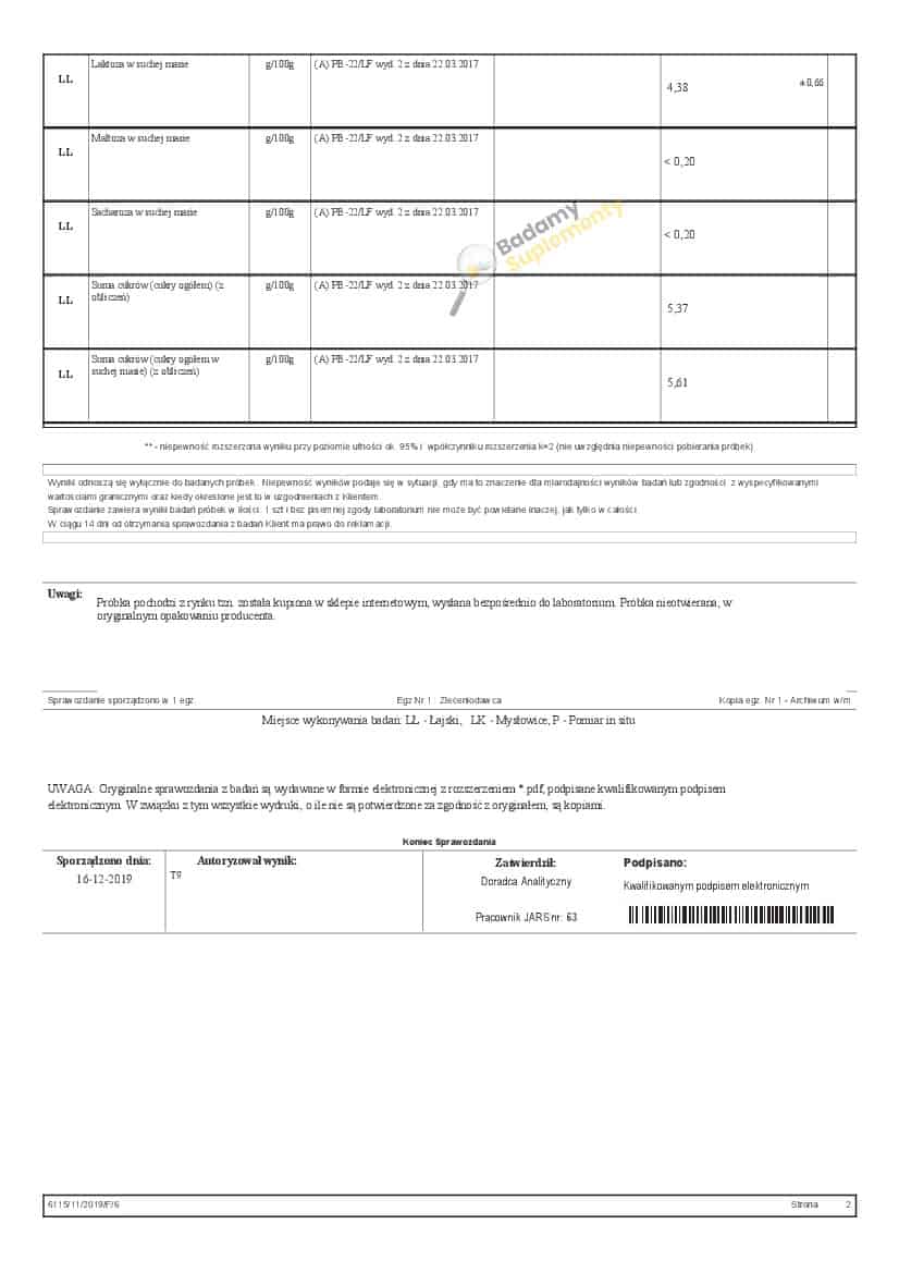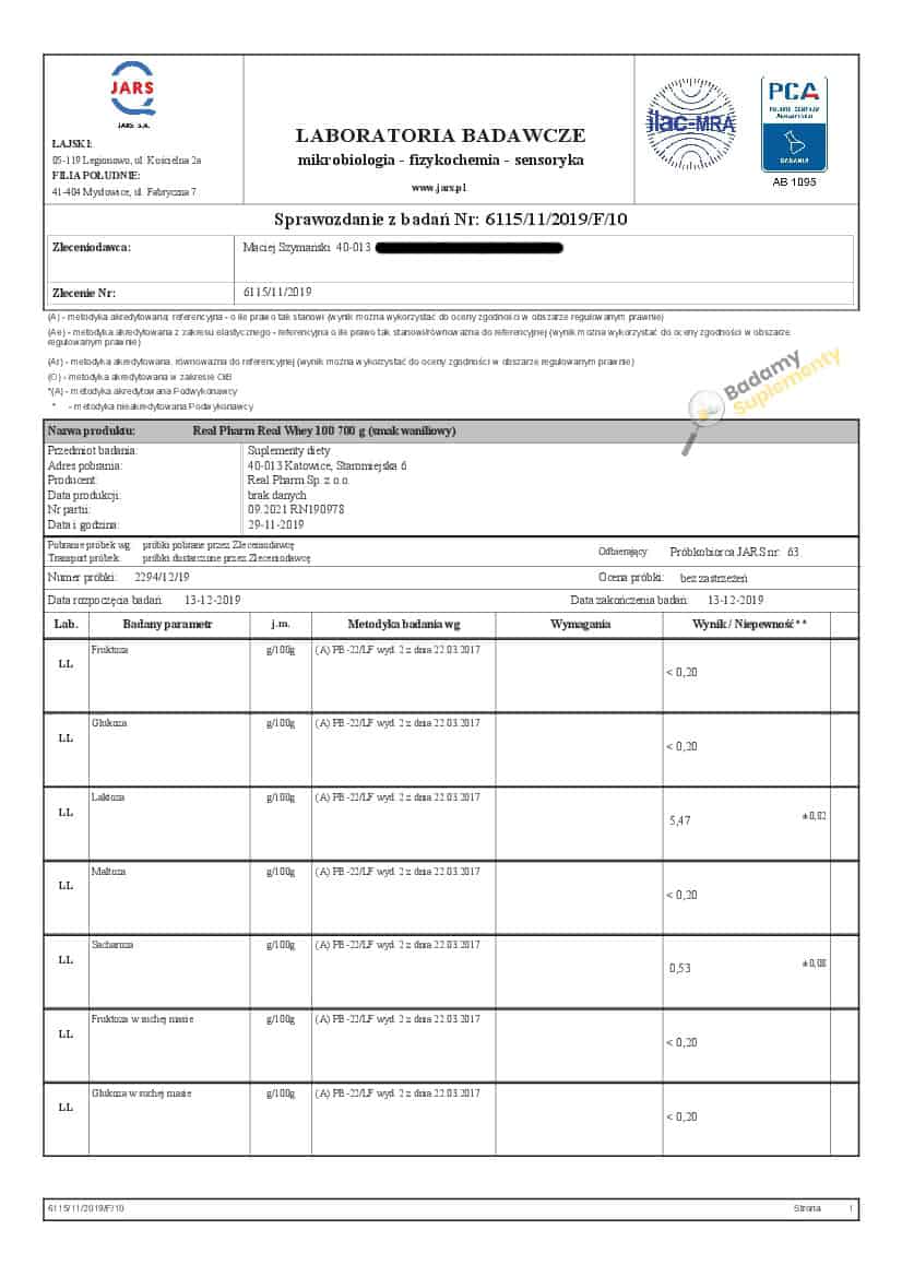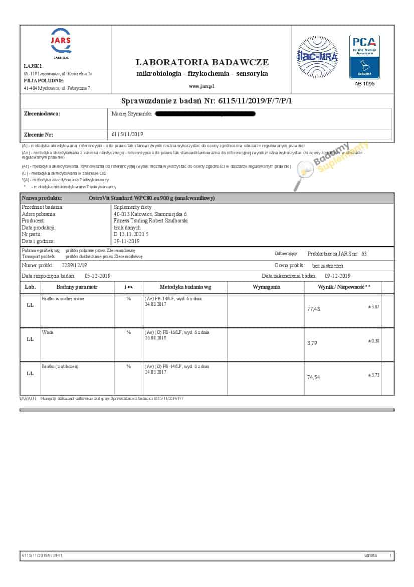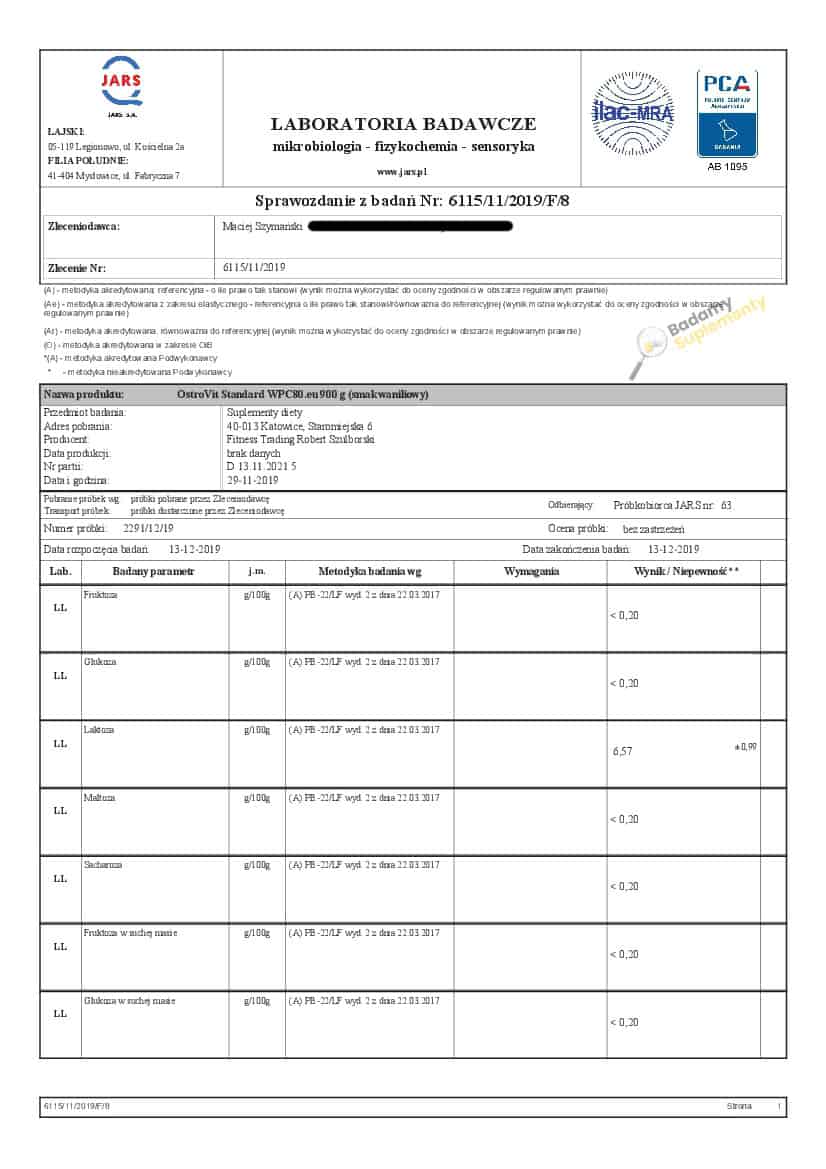 Wyniki badań odżywek białkowych